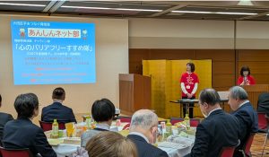 第一部では、ご来賓の皆様よりご挨拶を頂戴したのち、恒例の「心のバリアフリーすすめ隊」による理解啓発ワークショップを行いました。ワークショップでは、知的障害のある人たちに分かりやすく伝える方法を参加者の皆さんと一緒に考えました。鈴木晶雅区長にも初めてワークを体験していただき、「とても分かりやすかった。今後、障害のある方と接する時に参考にしていきたいですね。」と温かいお言葉をいただきました。今年も多くの方々に知的障害のある人たちの特徴や関わり方をお伝えしていきたいと思います。